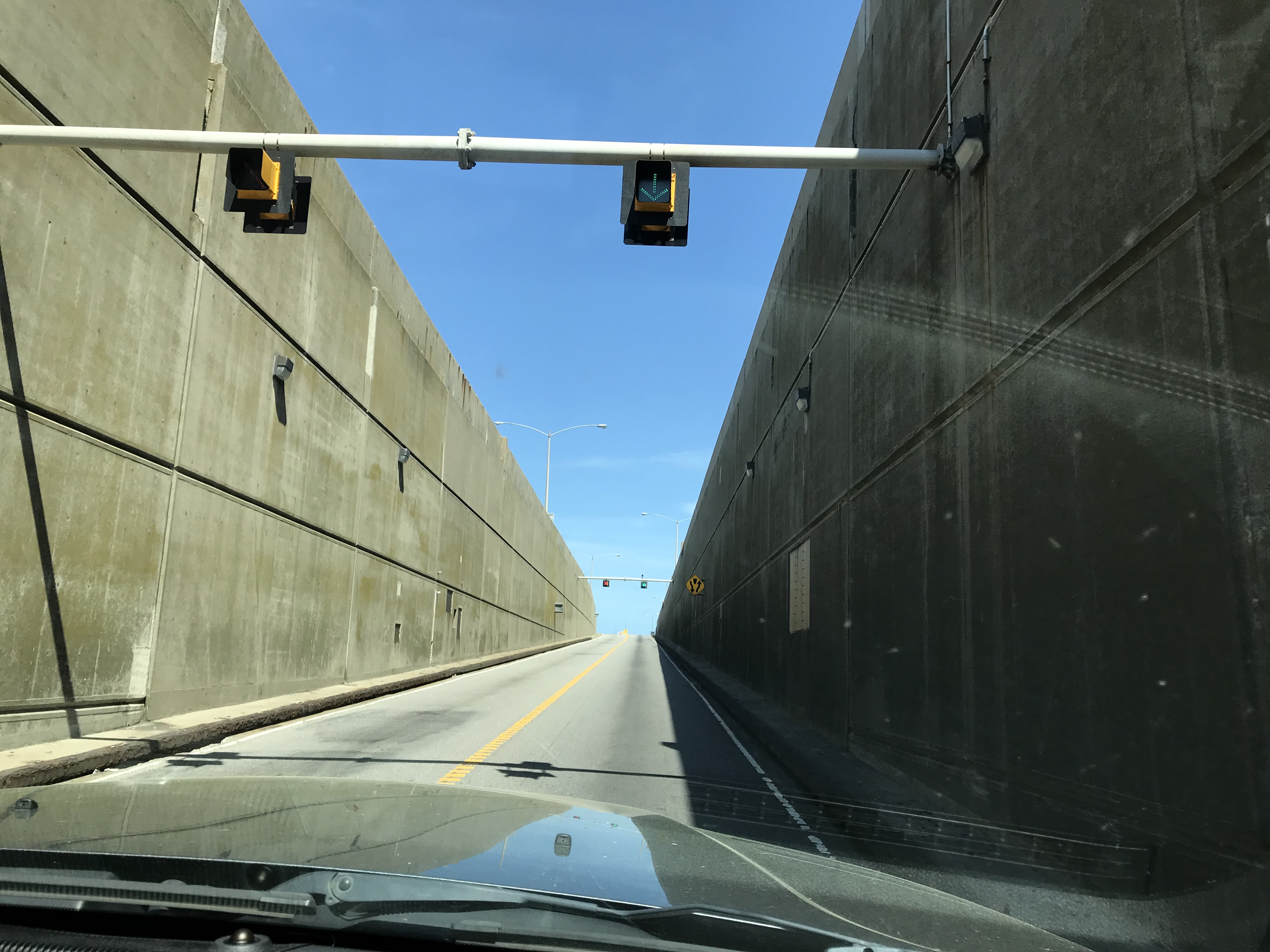 Going across the Chesapeake bridge you have to go through two tunnels, each about one mile in length and depending on the tide it can range from 25 – 75 feet underwater.