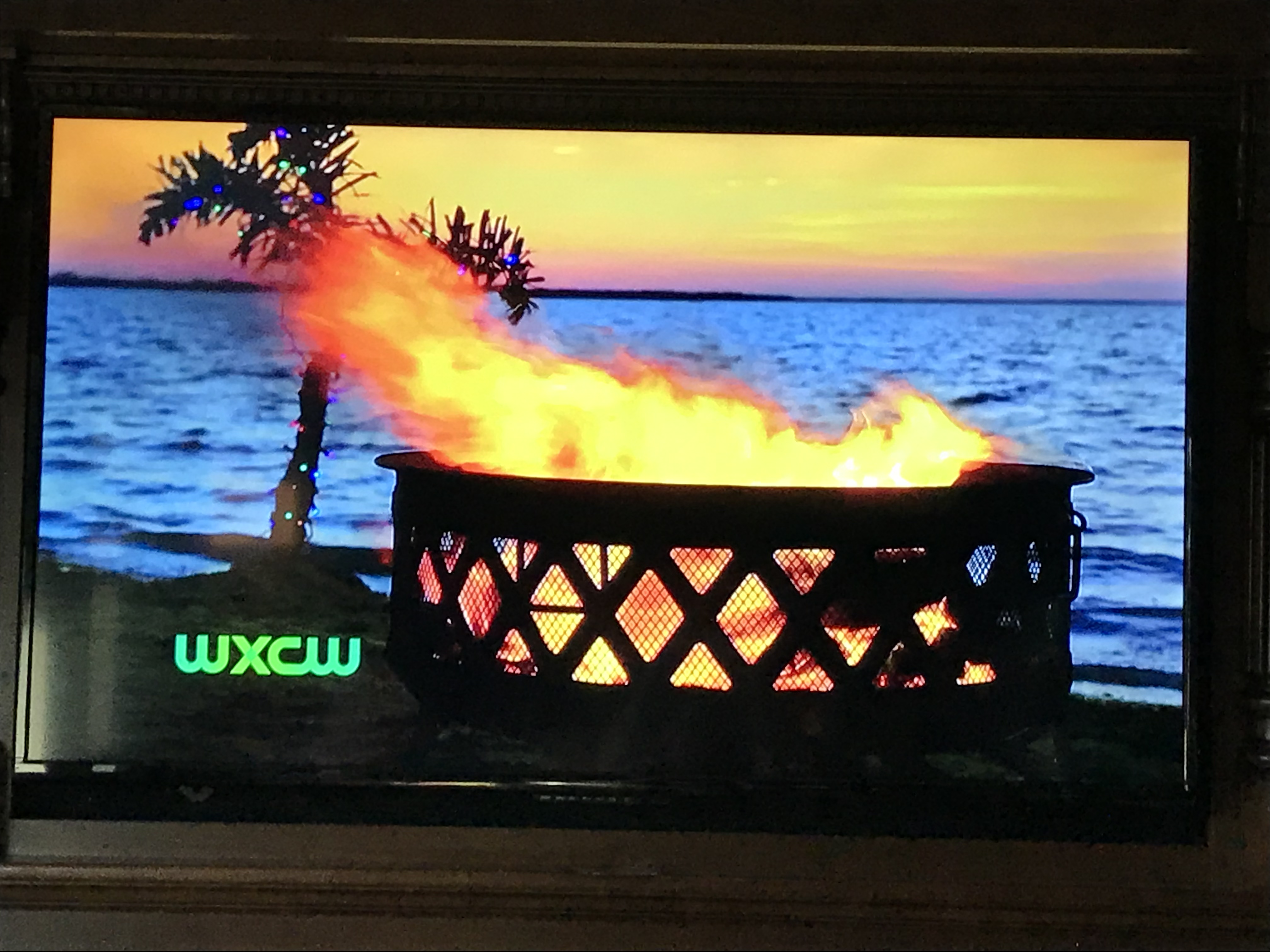 The Florida Yule Log channel for Christmas. Digging the beach scene versus the fireplace backdrop in the Midwest.