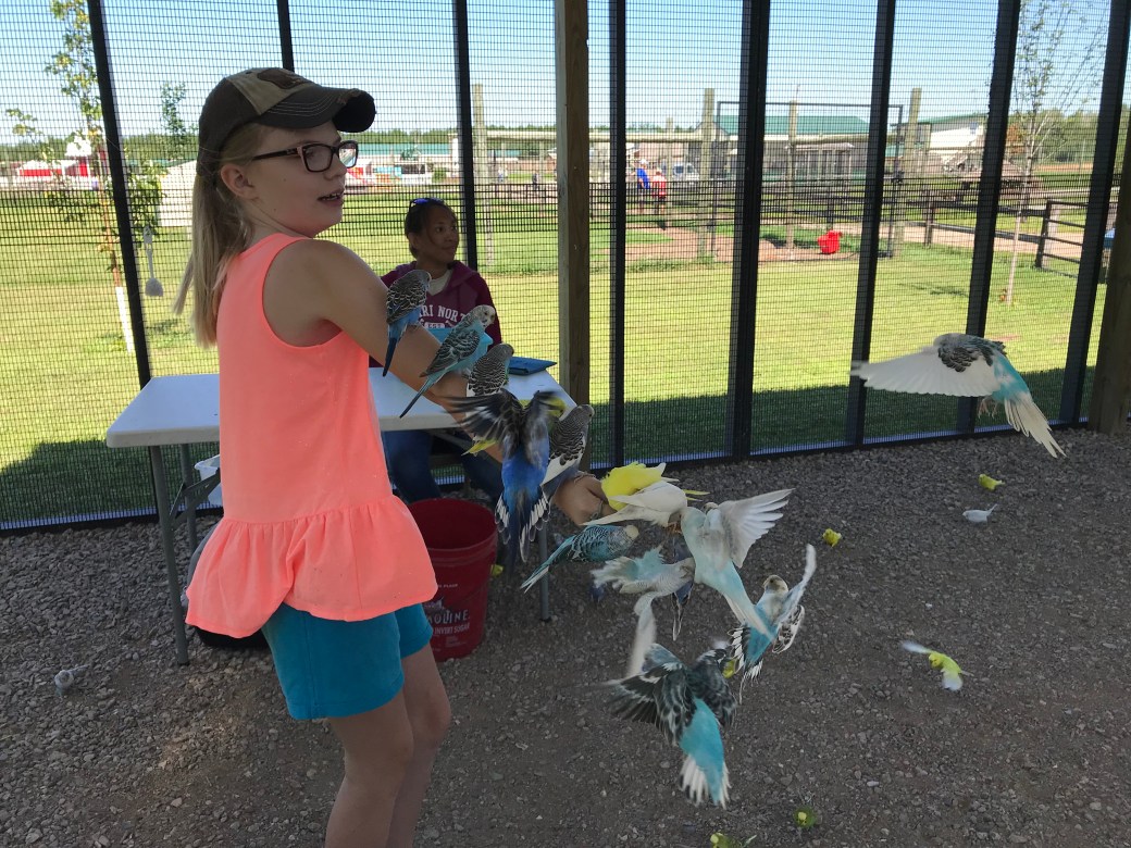 It’s a feeding frenzy, a little freaky being in the cage, the birds start to go crazy when you get your birdseed stick.