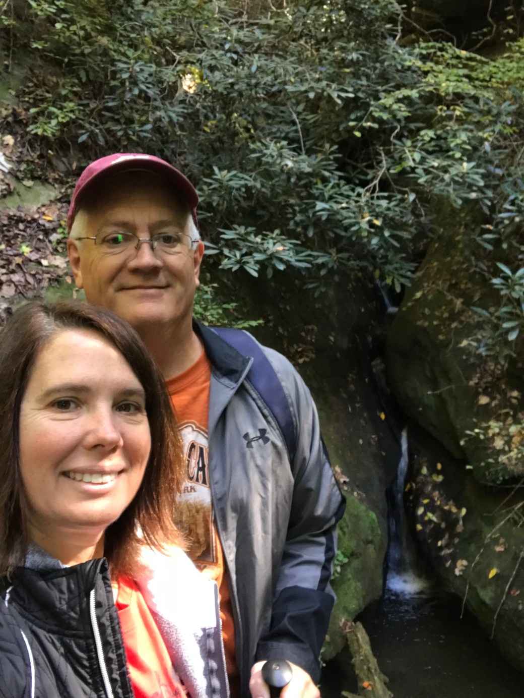 Yahoo Falls, tallest waterfall at 113′ in Kentucky, you can see the second set of steps on the right hand side (and John) people talk about wading around in the pool, we passed as it was only in the 50’s.